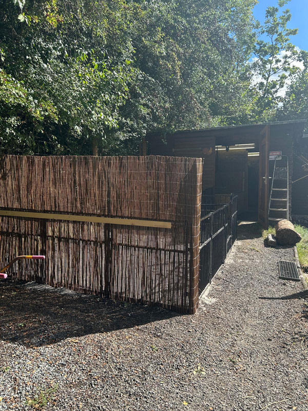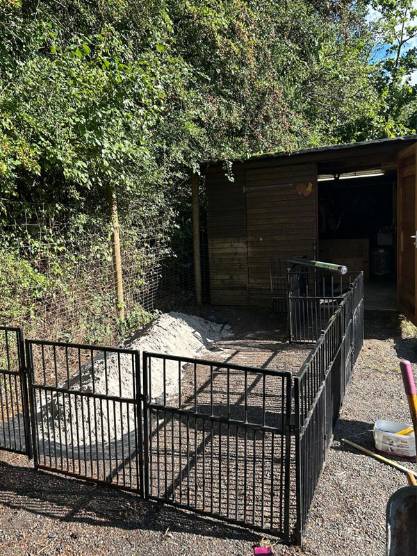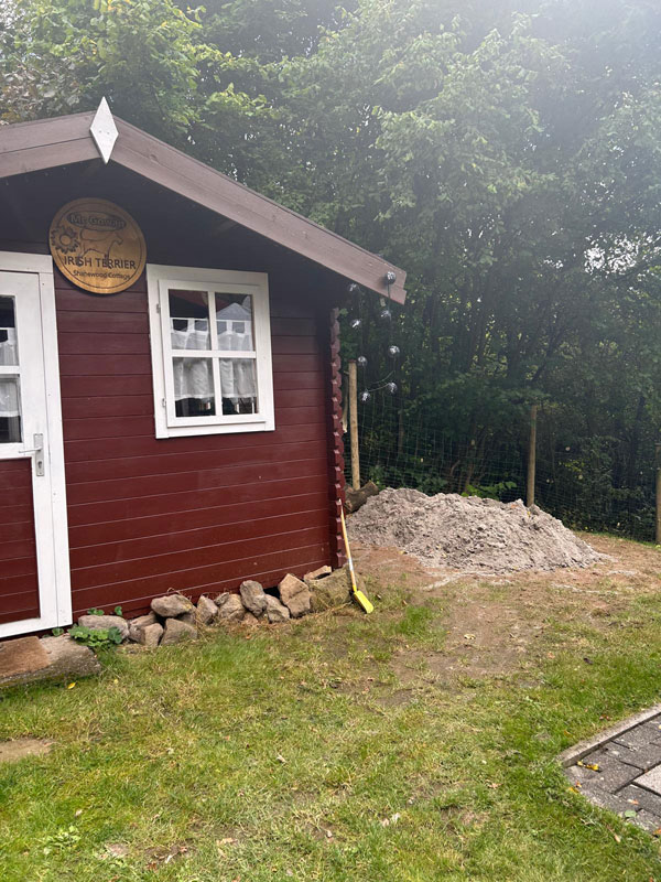 weil wir nun einmal in unserem Züchterleben zwei Würfe zugleich in Shanewood haben, war es notwenig, dass wir uns mit der Erweiterung unseres Welpenareals befassen. Das kleine Cottage mit Welpenauslauf ist grundsätzlich ausreichend, doch wir haben uns darauf festgelegt, einen zweiten temporären Indoor und Outdoor Bereich anzulegen, um die Würfe zu separieren. Die Idee war es, den Carport exklusiv für unsere Ira und Ihren E-Wurf in einen Indoor-Bereich und die Fläche davor in einen Outdoor-Bereich zu verwandeln. Zudem haben wir den Freilauf des Cottage um gut 1/3 Fläche erweitert.
