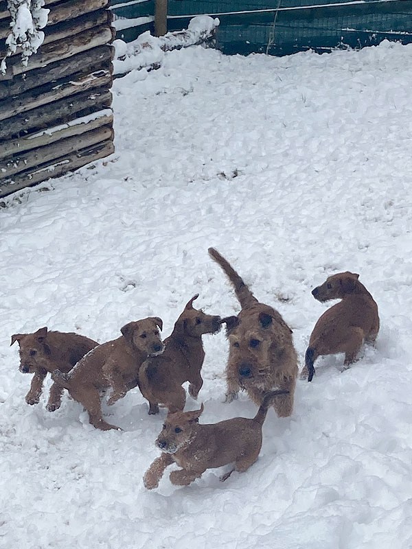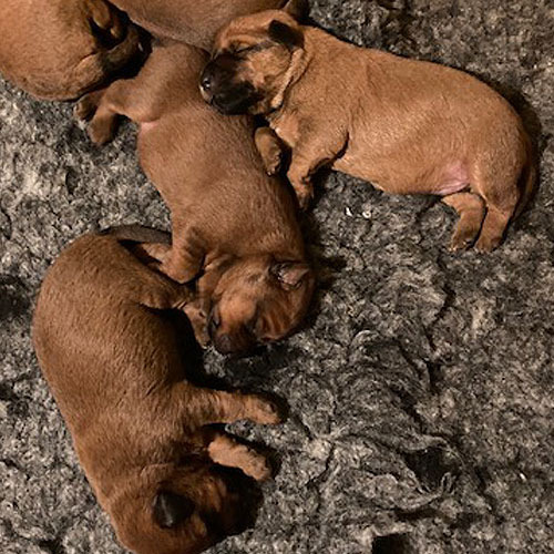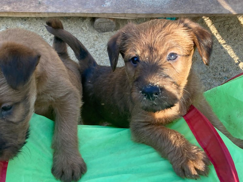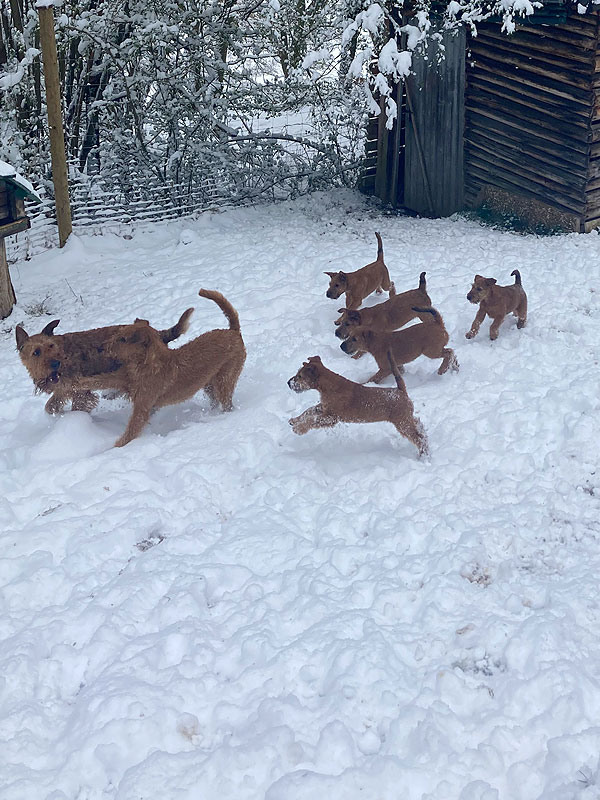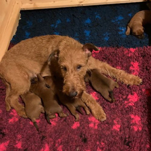 Der McGowan B-Wurf aus der Verpaarung unserer Irish Terrier Shane McGowan von der Emsmühle und Fireflash Ira McGowan erblickte am 22. Januar 2022 das Licht der Welt. Nach problemloser Trächtigkeit von Ira freuen wir uns über fünf Welpen. Drei Rüden und zwei Hündinnen werden wir nun allerbestens aufziehen und prägen. Die Geburt verlief wie aus dem Lehrbuch und ohne jegliche Komplikation. Schon wie bei unserem A-Wurf dauerte die Geburt gut zwei Stunden. Ira und die B-Wurf Welpen sind wohlauf. Zu danken haben wir unseren Züchterfreund*innen Sonja Metschulat und Hans & Karina Grüttner, für unsere wunderbaren Hunde.