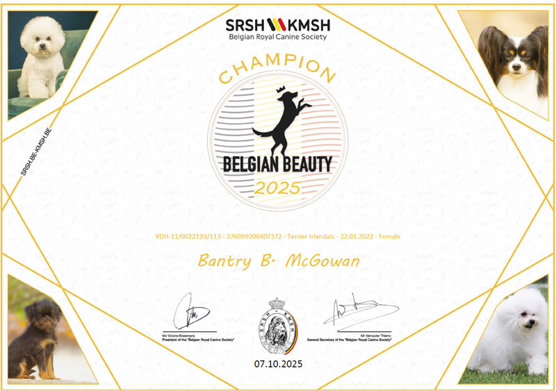 Bantry B. McGowan hat nun alle Bedingungen für den Belgischen Champion erfüllt und alle CACs, die benötigt werden erworben.