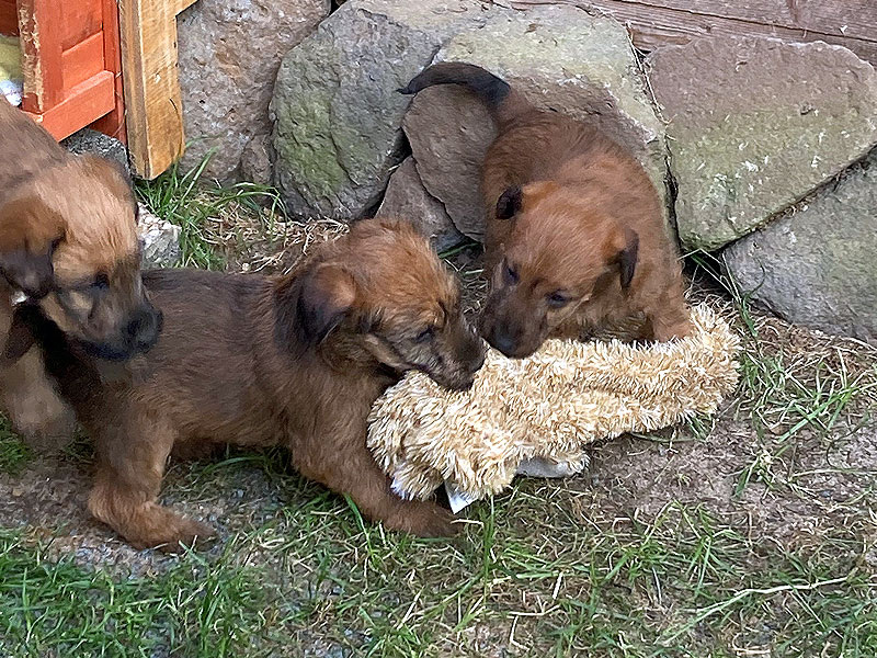 Es ist soweit! Natürlich fällt uns der Abschied von den Welpen schwer, sie wurden mit viel Herzblut aufgezogen und auf ihr Leben vorbereitet. Doch der Abschied ist ein Teil der Aufgabe und gehört dazu. Im Verlauf einer Woche werden die kleinen McGowans von ihren neuen Familien abgeholt. Wir nehmen uns grundsätzlich viel Zeit bei der Abgabe. Alle Welpen hop hop an einem Tag weg, das gibt es bei uns nicht. Wir wollen, dass die Welpenfamilien bestens informiert sind und wir alle wichtigen Punkte noch einmal angesprochen haben.