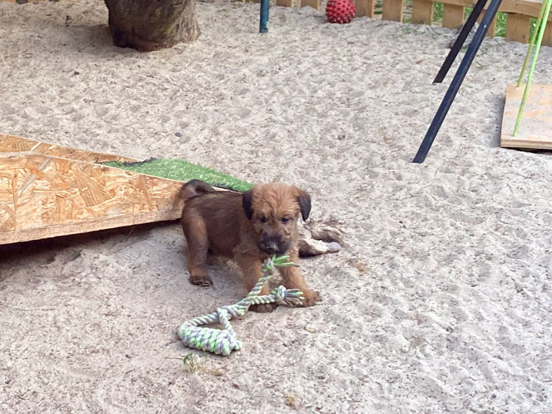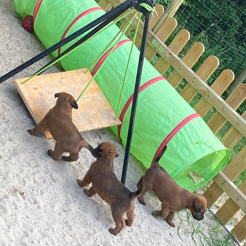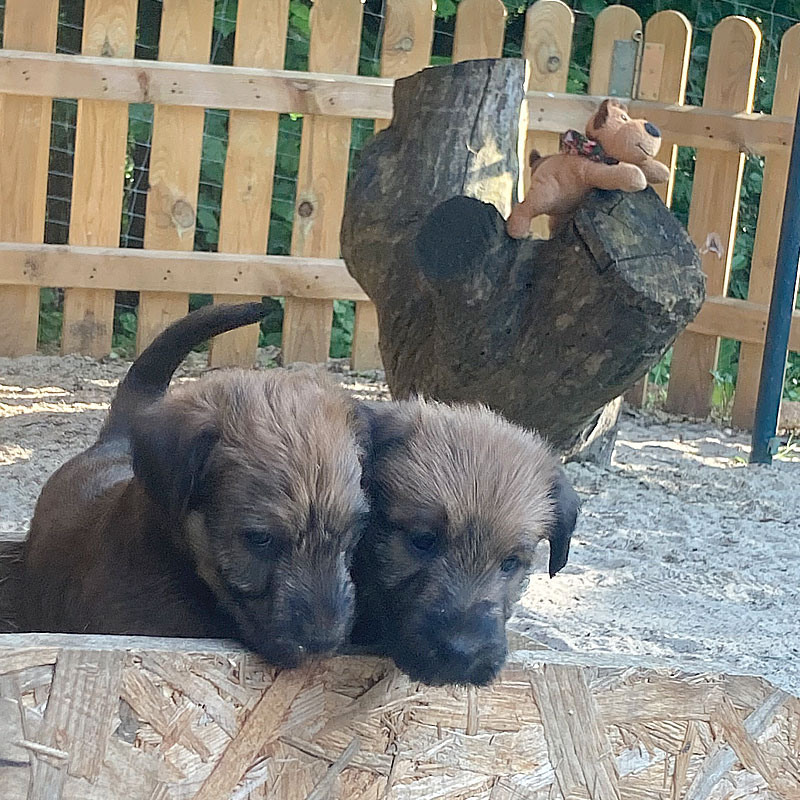 Die Outdoor-Woche! Die Welpen sind nun den ganzen Tag im Aussenbreich unterwegs und haben mächtig Spaß. Sie erkunden ihre kleine Welt mit viel Interesse und Neugier. Immer dabei sind unsere beiden Hündinnen Ira und Bantry. Die große Halbschwester Bantry kümmert sich herzallerliebst um die Zwerge und hat sie immer im Auge. Es ist eine Freude zu sehen, wie schön sich die beiden Hündinnen um die Welpen kümmern.